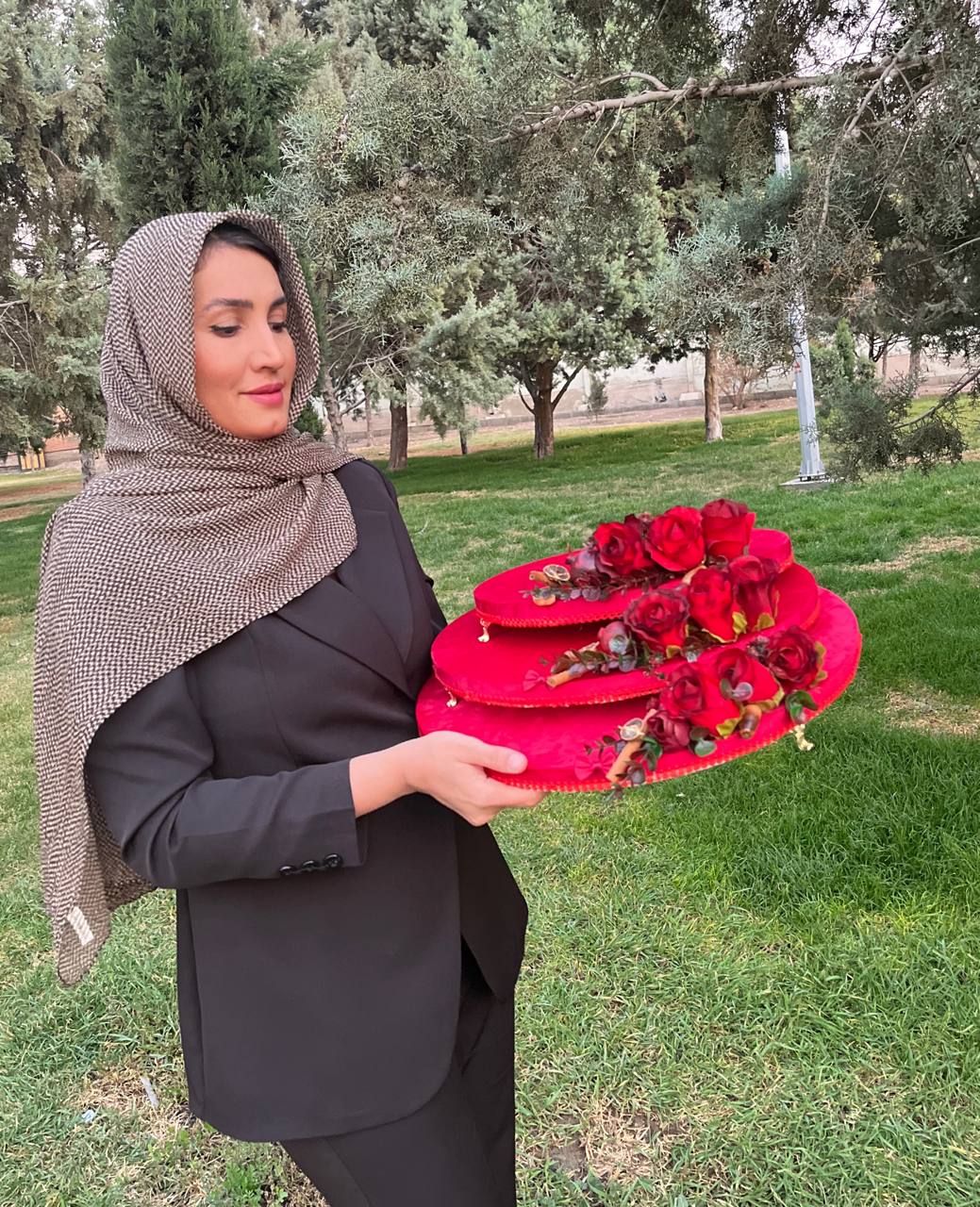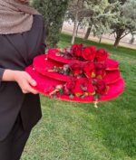 سه سایز سینی از جنس چوب مخمل شده ی پایه دار با گلارایی