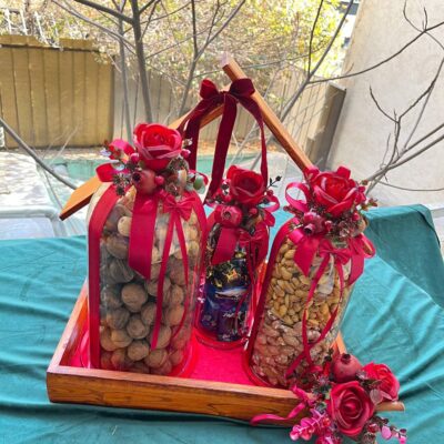 ارسال فقط در تهران و اطراف تهران فالنامه ی زیبا با گوی شیشه ای تزیین شده که میتوانید برای مراسمات یلدایی خود در تزیینات استفاده نمایید